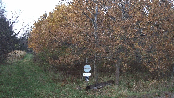 Stien til højre fører til Audebo/ Nykøbingvej og stien til venstre fører til Øvejen / Gislinge, hvor der flere steder er stier ind i skoven.